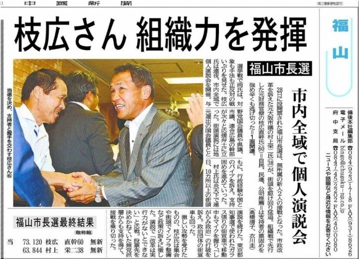 例え1票差でありましても当選は当選ですから枝広候補のご当選、誠におめでとうございますです。
