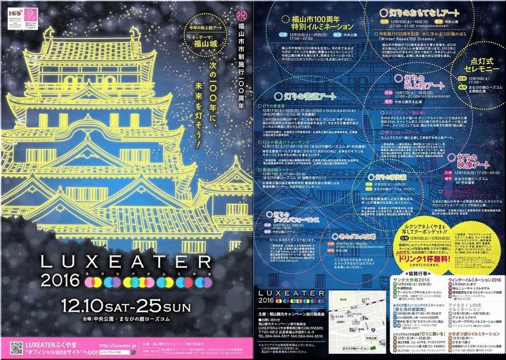 LUXEATER(ルクシアタ)ふくやま2016の詳細情報です。LUXEATER(ルクシアタ)ふくやま2016は福山のスポット。更に広域から探すには 、広島のイルミネーション、中国・四国のイルミネーションからどうぞ。