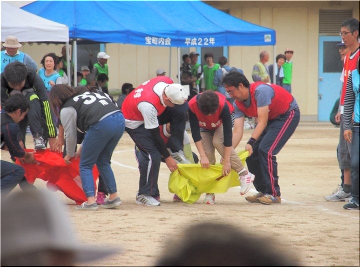 玉入れ競技が終わりますと、学区民運動会も残されました種目は、あと二つのみ。