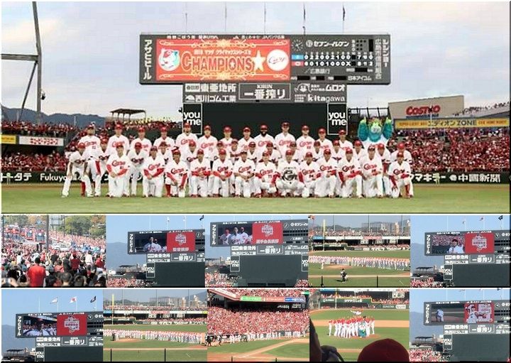 そして、黒田投手と新井貴浩選手を先頭に選手たちがリーグ優勝のペナントを持ってグラウンドを一周し、ファンの声援に手を振って応えました。