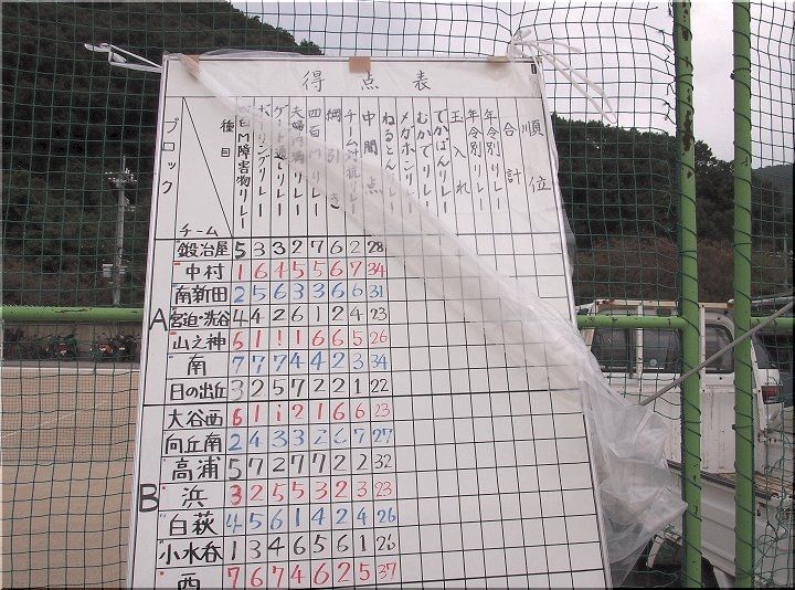 うん、うん、午前の部を終わった段階で中村自治会は34点で同率首位。