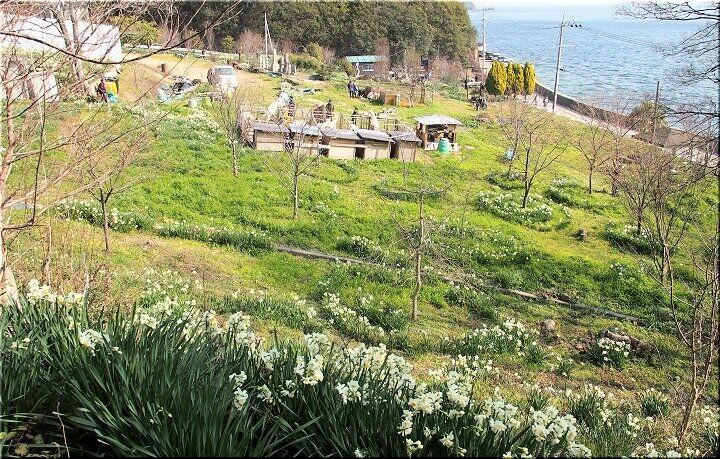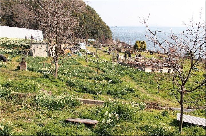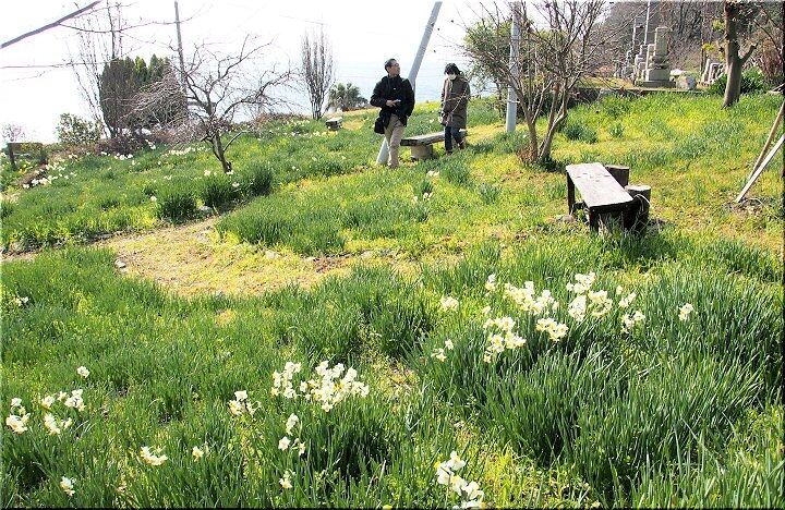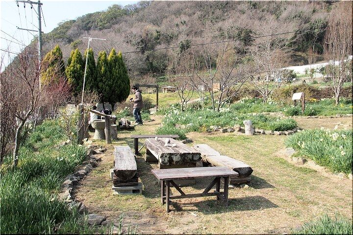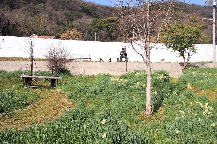 この水仙の里で作業しておられます男性…管理人さんなのでしょうか…「今日は来訪者が多いのですか?」と尋ねますと、「あぁ多いなぁ~昨日の中国新聞記事で、今からまだまだ来られるよ(^-^)」とGONsanに返答中にも、携帯にまた電話(^.-)☆