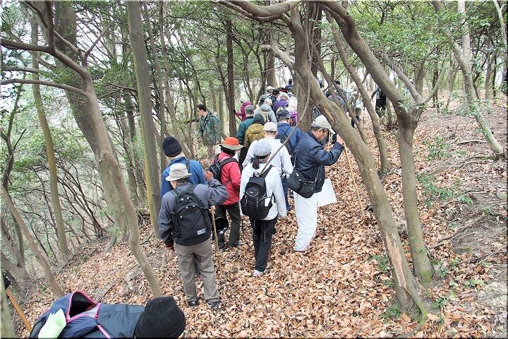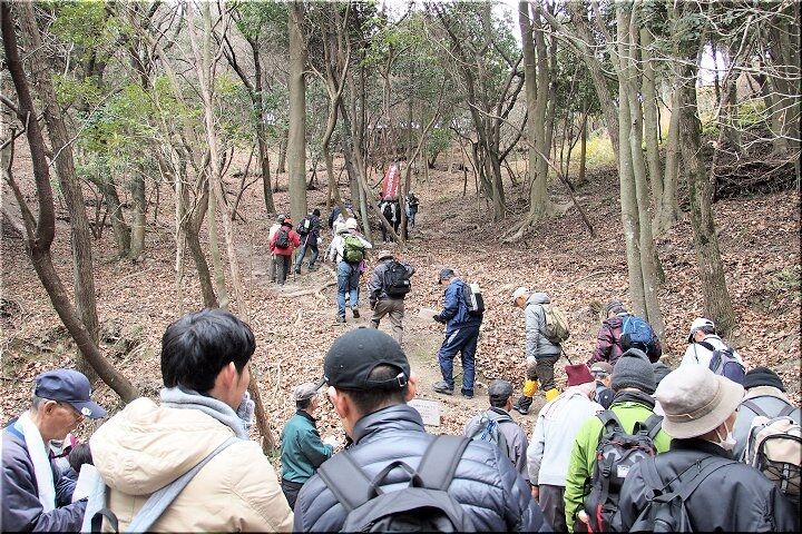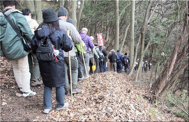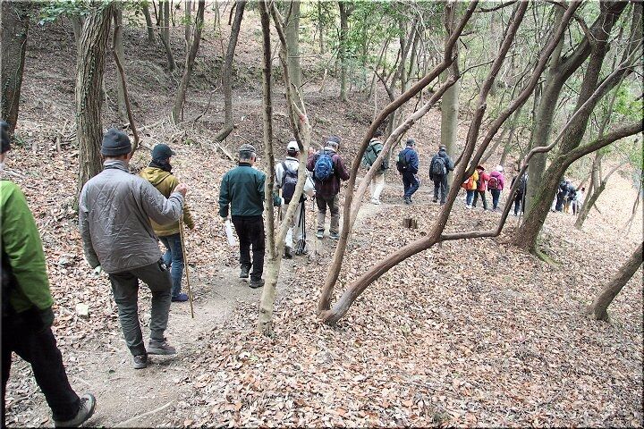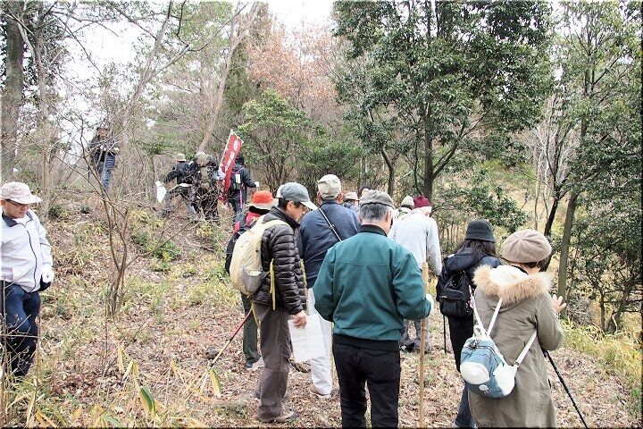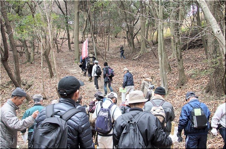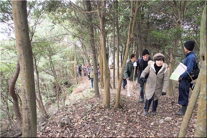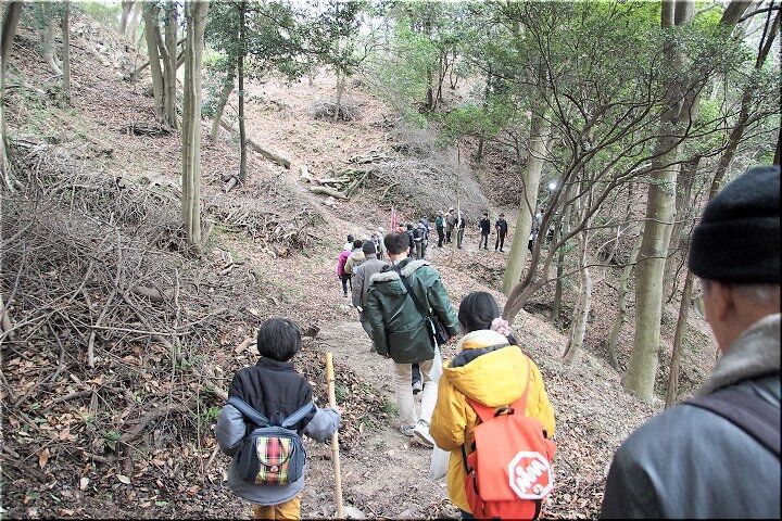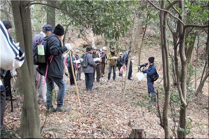 「戦国の要塞を体感する」を目的に、現在、最終段階になっている銀山城測量調査の成果を見学する山城ウォークで、同会の測量調査では、これまで銀山城跡と云われていた場所以外にも広範囲に広がっていたことが分かって来ていますようであります。