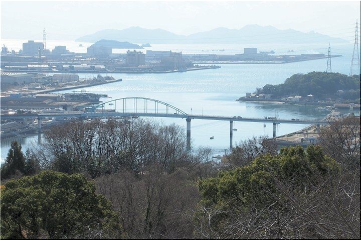 水玉ブリッジライン玉島大橋(通称源平大橋)。写真左側(乙島)に源氏軍、右側(柏島)に平家軍が陣を構えました。