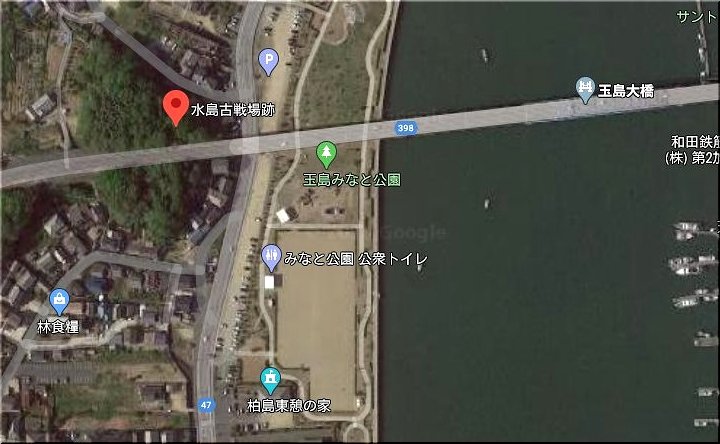 立ち寄りはしませんでしたけど、玉島大橋西詰めの「玉島みなと公園」西側には「水島古戦場跡」の石碑が存在しますようですネ。
