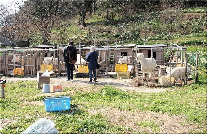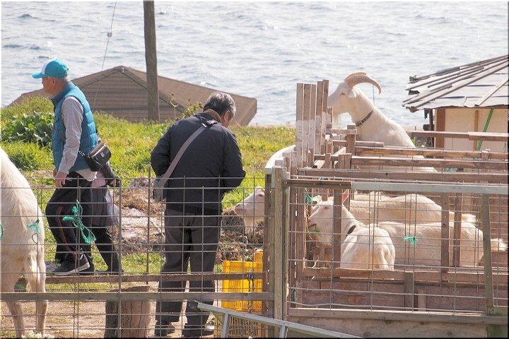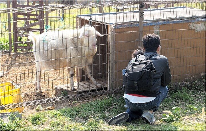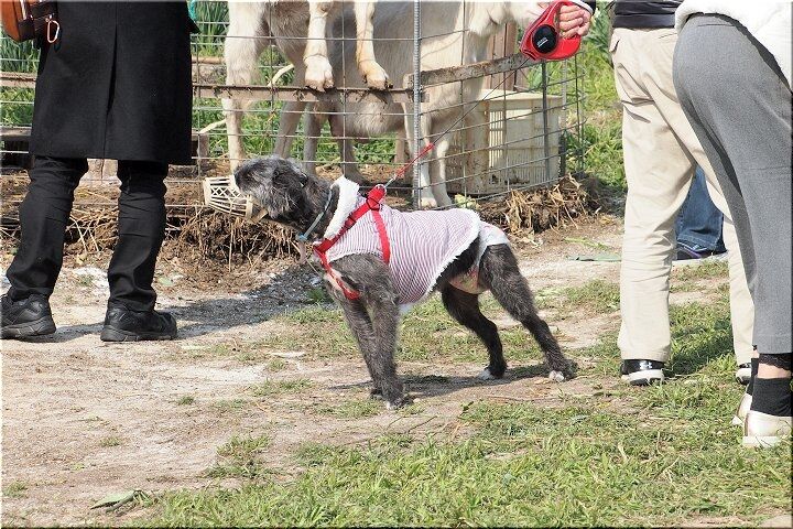 美味しそうに海苔を貰って食べています山羊sanの近くにヤッて来ましたのが、口輪を付けられましたワンchanなんですけど、まさか噛み付くからではないのでしょうけど…見境無く吠えまくりますから付けられていますのでしょうか…