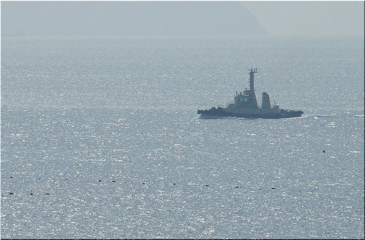 峠越えの途中で展望台らしき場所で一時駐車。一服しながら穏やかな瀬戸内に眼を向けておりますと、沖合を一艇がユックリと移動。本当にノンビリとしますねぇ(^-^)//"