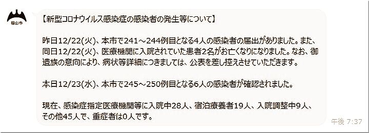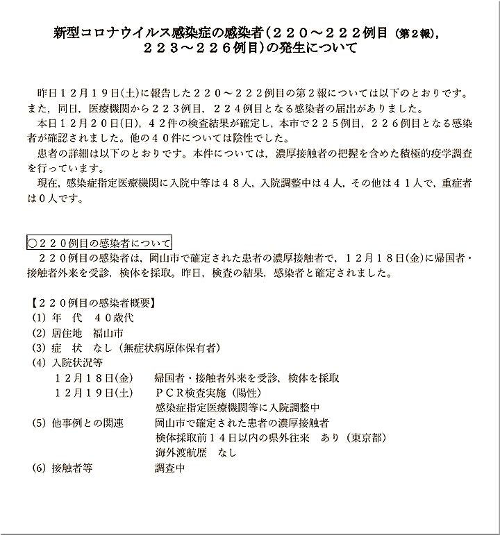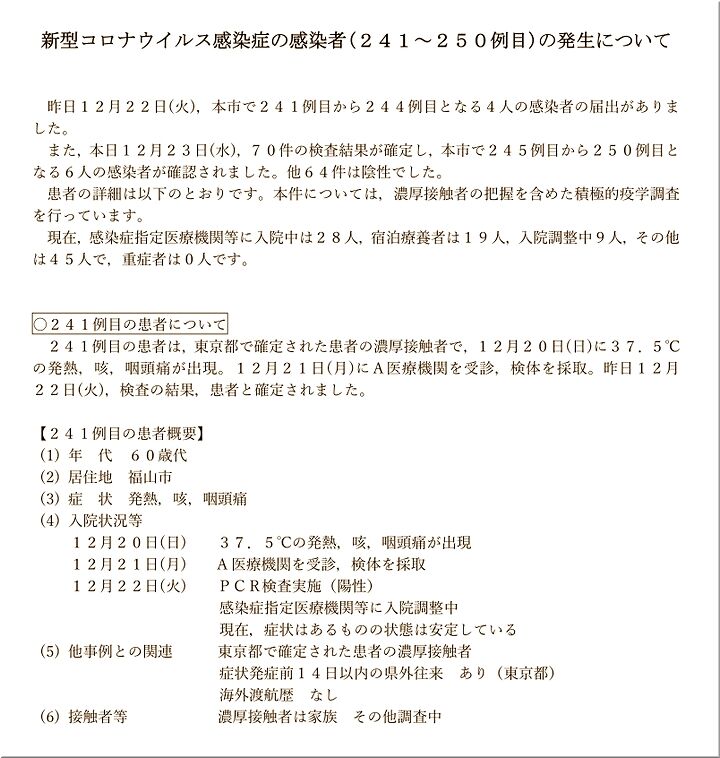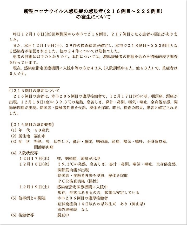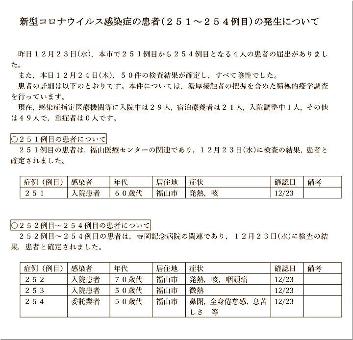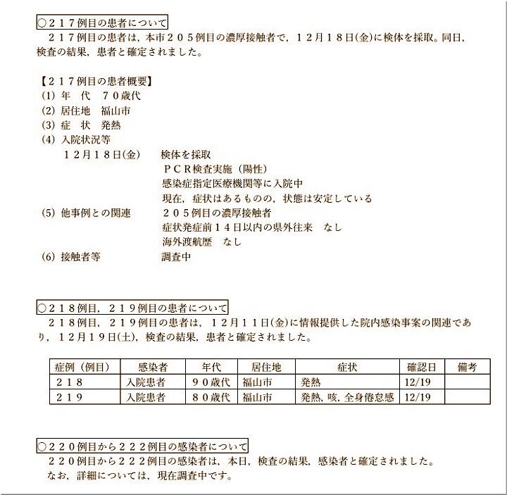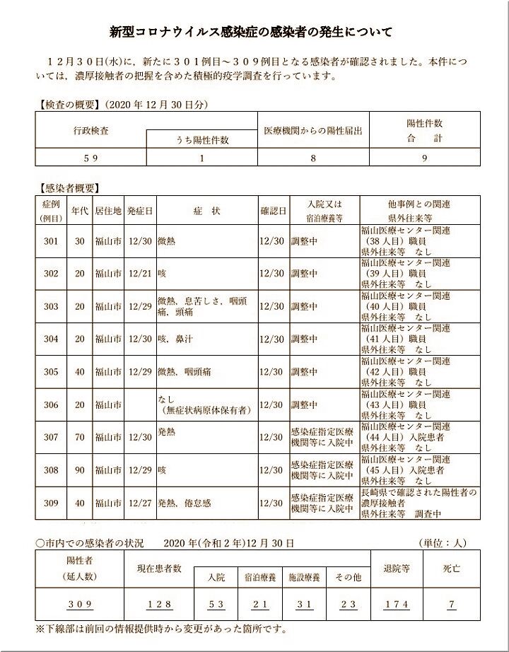 これで、福山市の感染者は、309例目となりまして、福山医療センター関連では計45人目の感染者発生となりますネ。