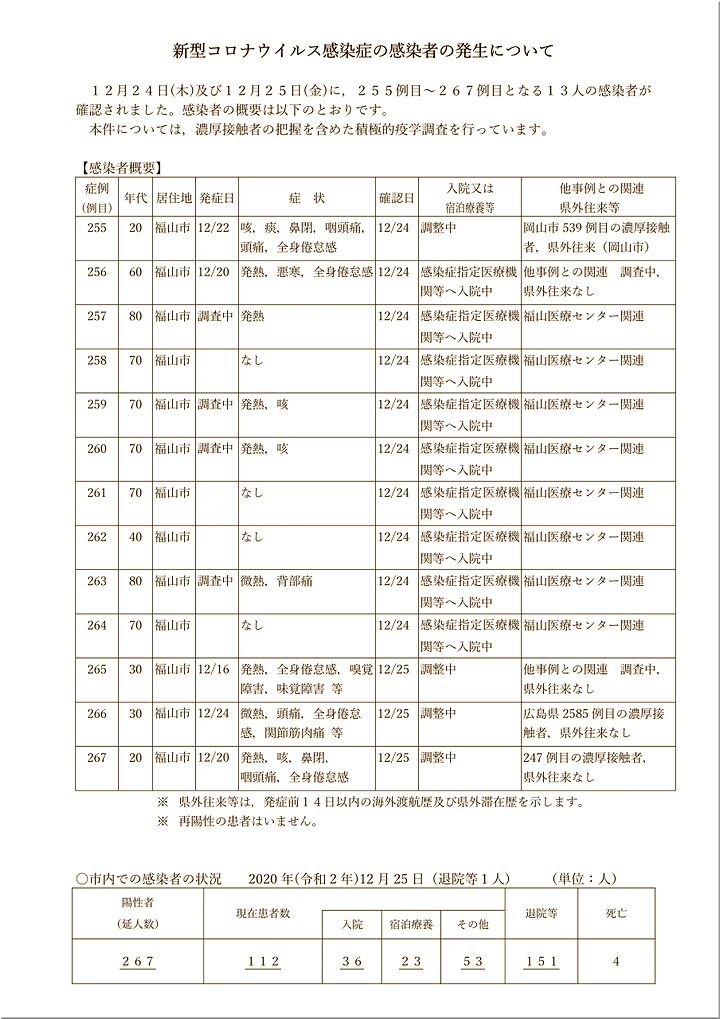 本日(11/31)の福山市の発表では、また新たに9名のコロナ感染者が確認されましたようです。そのうち8名が、福山医療センターのクラスター関連のようであります。