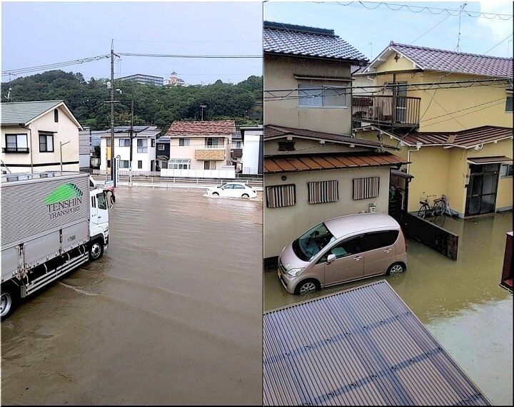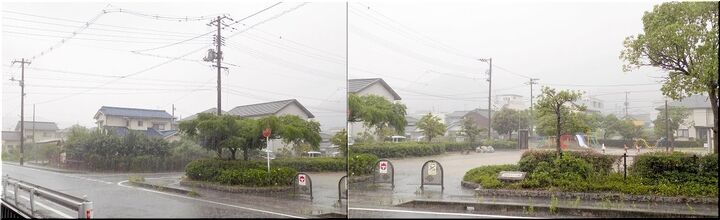 挿入の画像は、激しい降雨の最中に、我が家周辺の景観を納めたものなんです。
