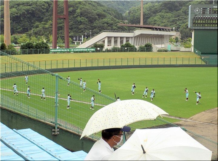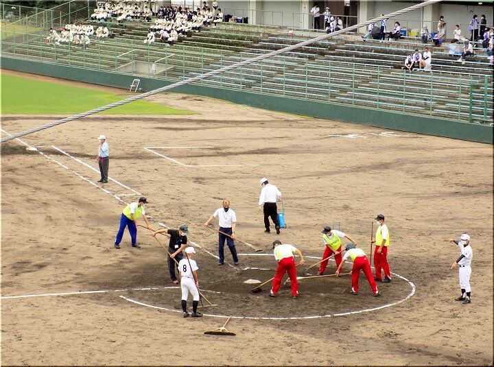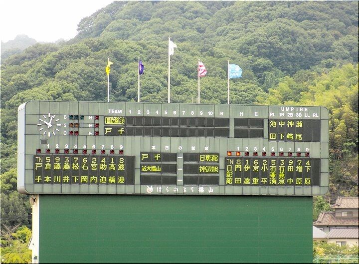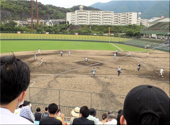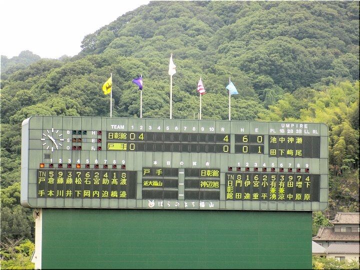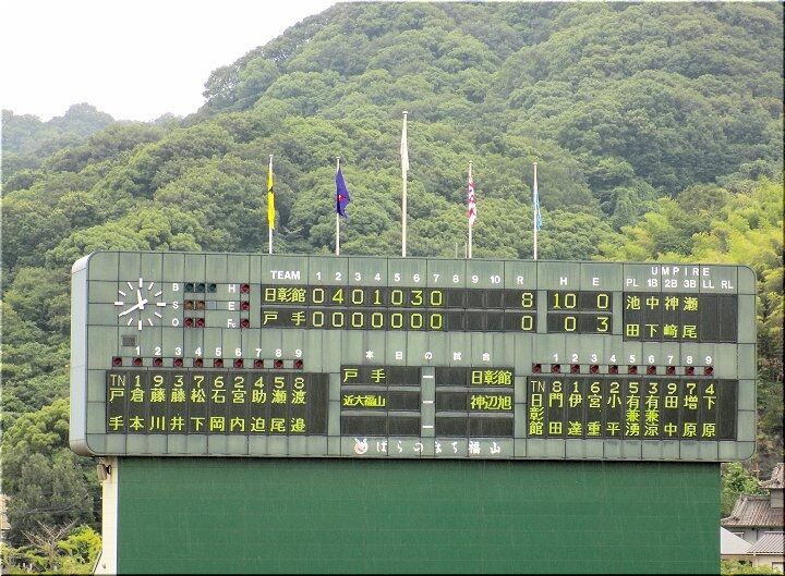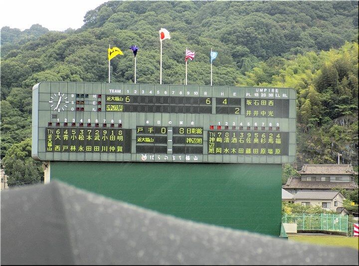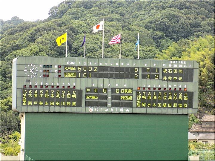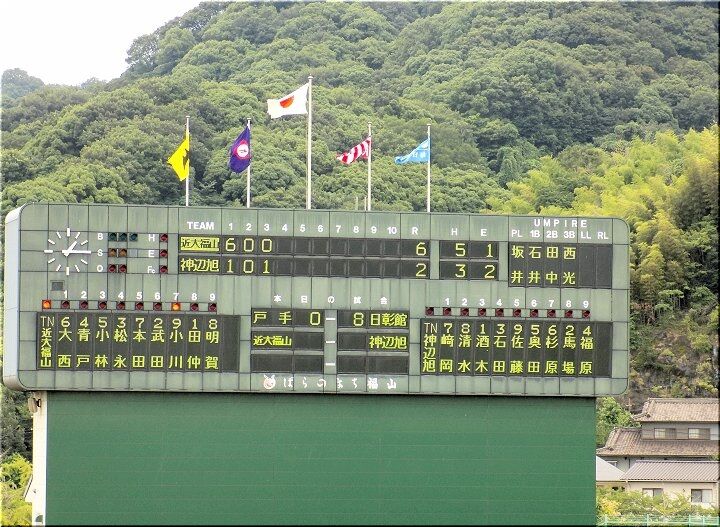 3、4、5回、こつこつと1点ずつ返していきます神辺旭で、5回を終えた段階で「8×4」となりましたけど、6回表の近大福山の攻撃。また追加得点がありそうですネ。