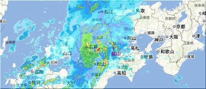 今朝は、晴れ間も覗き好天を思わせましたけど、天気予報では豪雨の福山市内。朝方の晴れ間も、時間の経過と共にドンヨリとした空へと変化です。