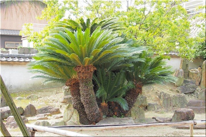 境内1面に枝葉を広げる黒松は「天蓋マツ」と呼ばれ国の天然記念物に指定されています。幹回り3.2m・高さ5.5m・枝張り東西19.3m・南北34.0mで枝葉の広がった総面積は約600㎡です。