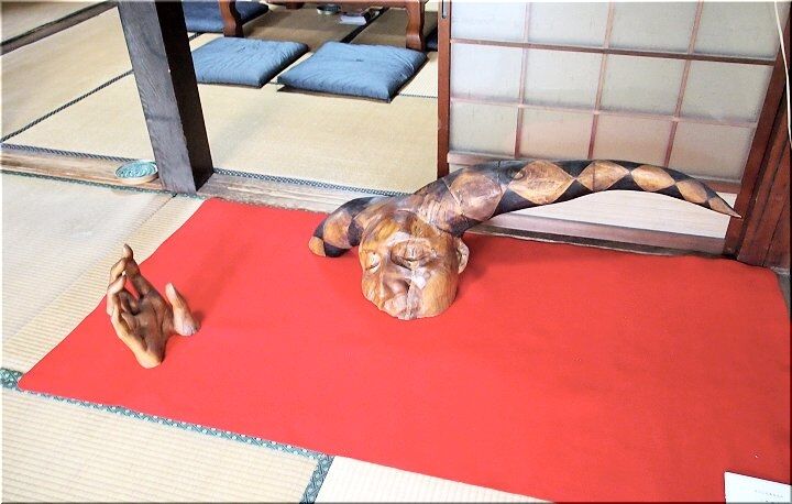 続いて、「遙かなるもの 素材:クスノキ」「大切なものはいつだって 素材:クスノキ・焼き黒色」「今ここにあるもの 素材:クスノキ・焼き黒色」…と、拝見です。