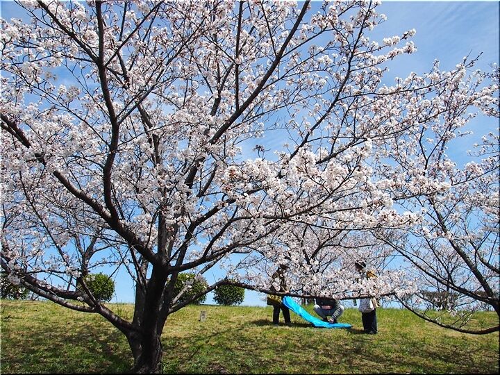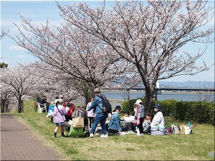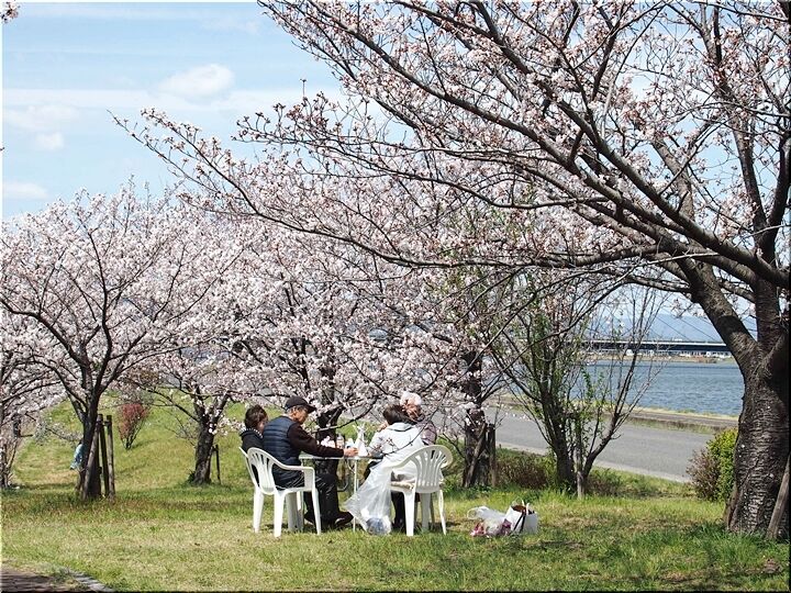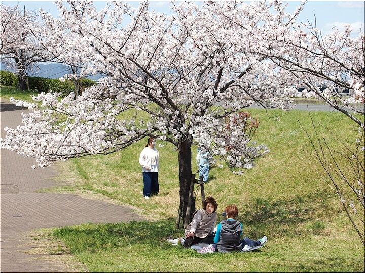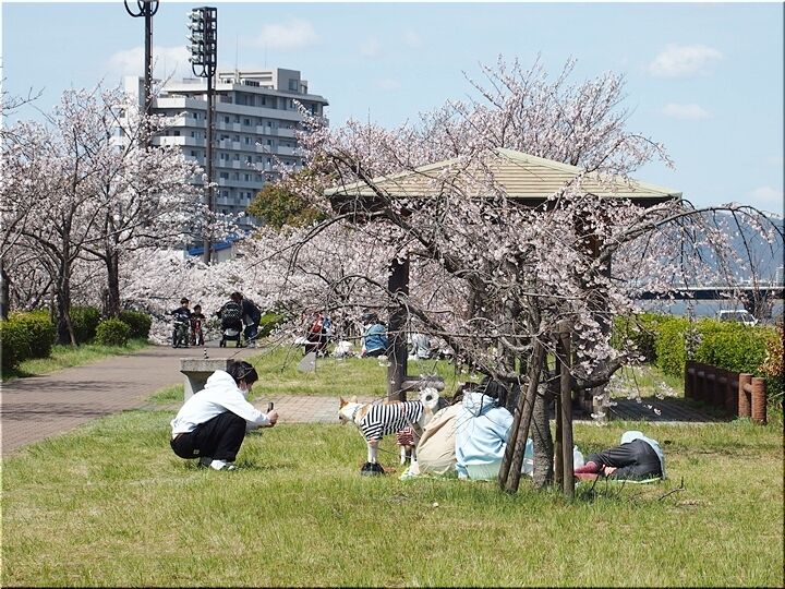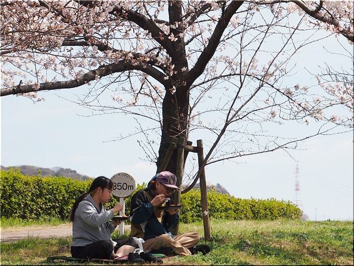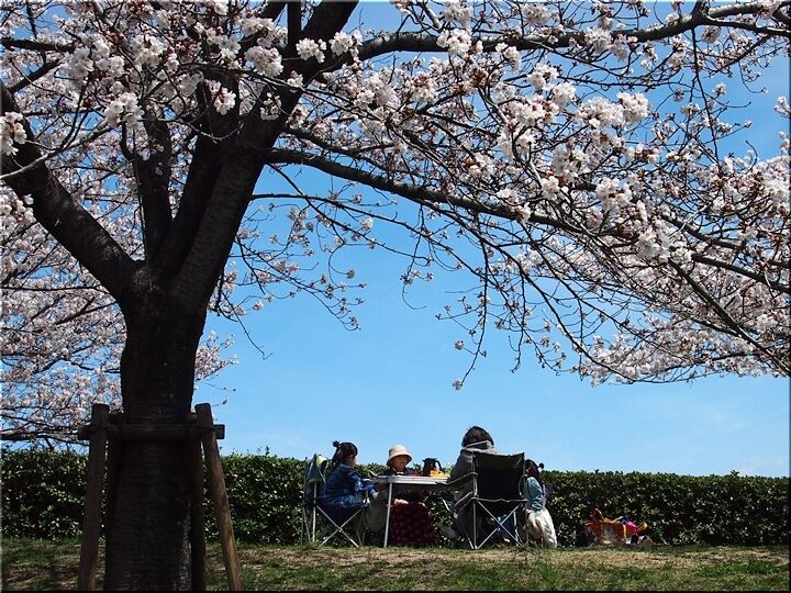 どちらのグループに眼を向けましても、皆さん楽しそうに談笑です(^.-)☆ 咲き誇る桜は、コロナ禍の沈んだ気持ちを忘れさせてくれまして、本当にイィものであります(^-^)//"