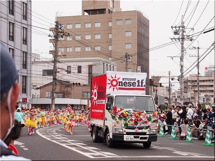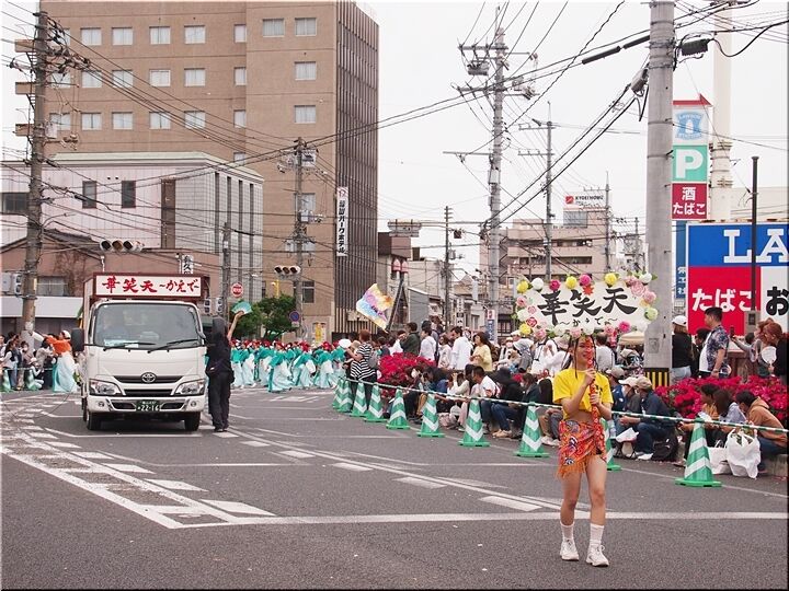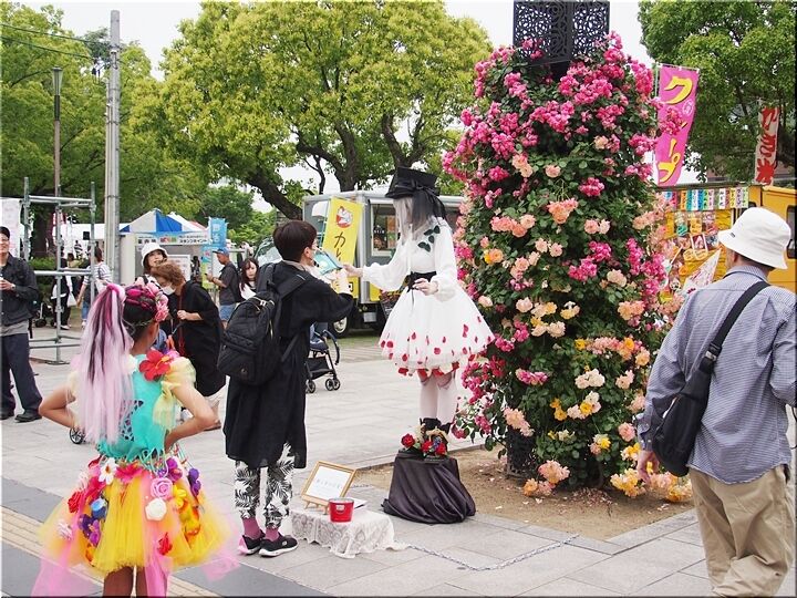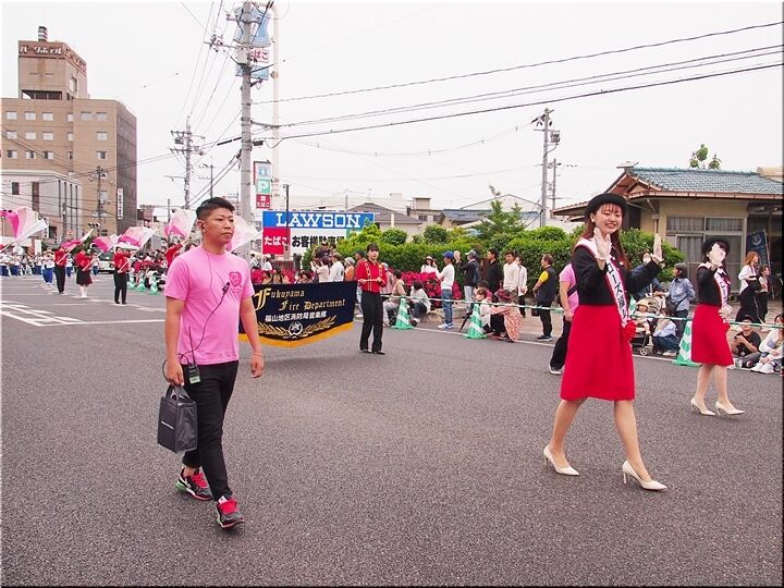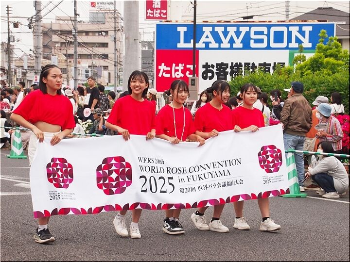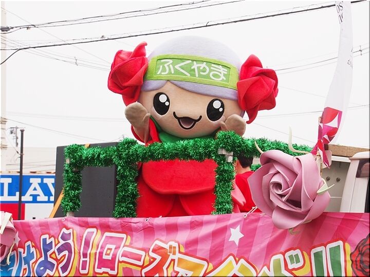 パレードの方は、〝第20回世界バラ会議福山大会〟のアピール隊、ローラちゃん応援隊、〝福山自動車時計博物館〟〝天當会〟の皆さん、スタジオ〝ワンセルフ〟の皆さん…と続きます。