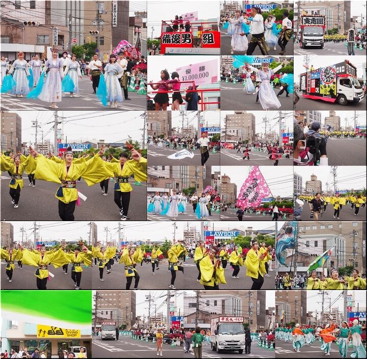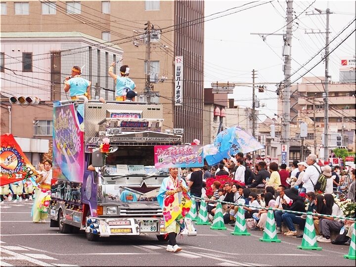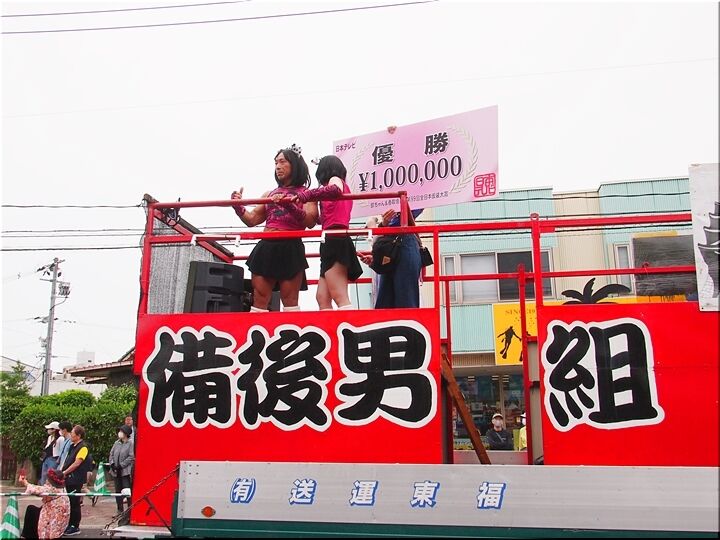 〝神石踊娘隊きらきら星〟の後方には、〝備後男組〟〝支志團〟〝華笑天〟…と、よさこいチームの皆さんが続きますけど、〝備後男組〟の『優勝 ¥1,000,000』は、何なんでしょう?