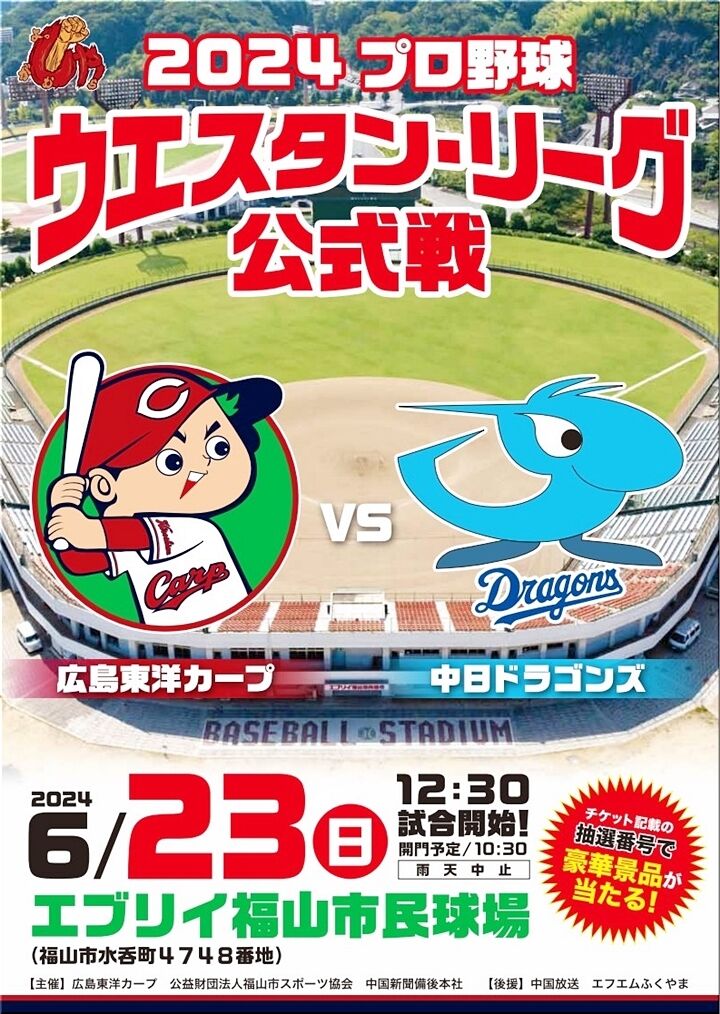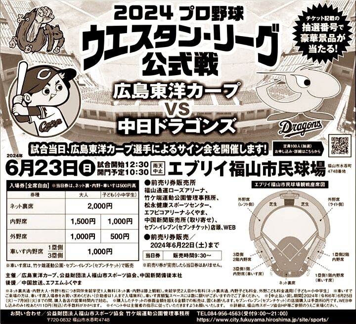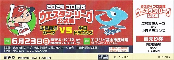 それはともかく、未だ先の事と思いながらも、本日、6/23(日)のウエスタン公式戦「広島×中日」のチケットを購入。