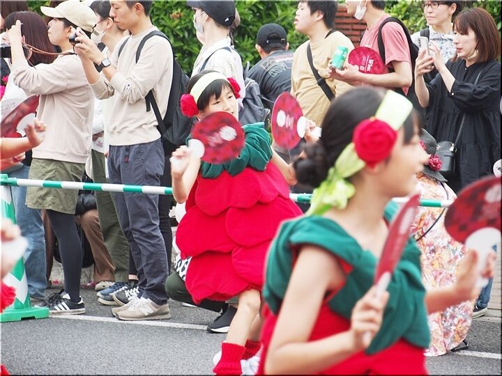 ローズパレードは、〝かなりや幼稚園〟〝俄嘉屋〟〝神石踊娘隊きらきら星〟と続きます。皆さん、〝福山ばら祭〟ではスッカリお馴染みですけど、〝俄嘉屋〟sanは昨年が初参加でしたか…
