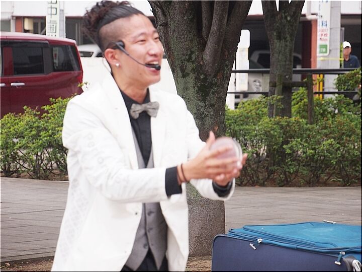 その後方に続きますのが、〝親善友好都市 浦項(ポハン)市〟の親善訪問団の皆様。この方々に続きます花車の搭乗者は、どなたなのだろう?…と、よくよく見ますと、〝ものまねタレントのホリsan〟でした。ふ~ん、何でまたローズパレードに参加しておられますのでしょうネ(^-^)