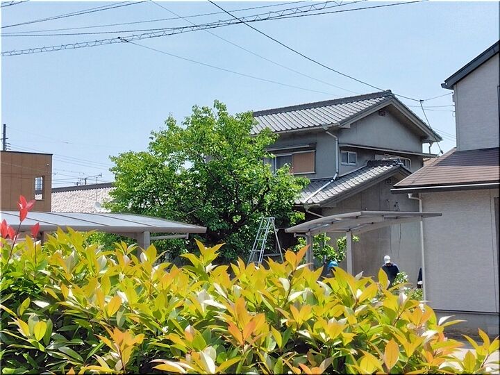 意外と時間を要されましたけど、うん、うん、サッパリしましたネ。この樹木、同じ木のように見えますけど、右側が〝杏〟で左側が〝梅〟の木なんです。が、このお宅の梅が実に立派(^_^)v