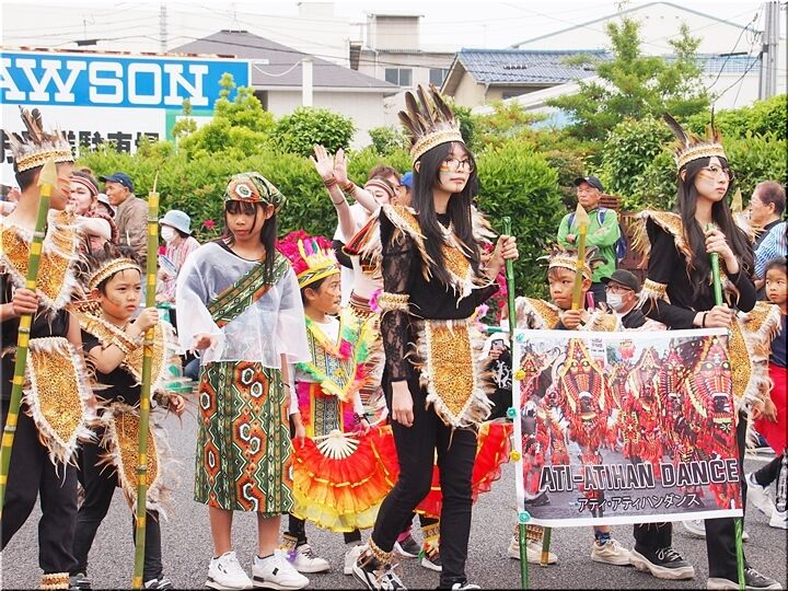 祭典は13世紀、パナイ島の先住民と移入者との間の平和的な土地取引を記念して始まったとされる。チームの代表で同県尾道市吉和町の飲食業丸山リカリンダさん(53)は「平和を祈り、神への感謝を込めて踊った。来年も出演できるよう準備したい」と汗を拭った。-- 以下略 --