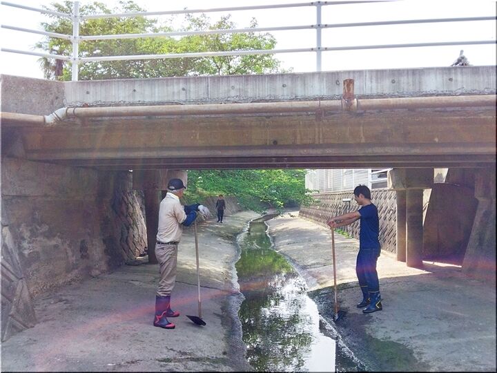 担当範囲は、〝豊年橋下~浜自治会の境界〟なんですけど、毎回、川底に入ります方は少ないかも(^-^)今回は特に少なくて、GONsan含めて総勢4名。いくらなんでも、今回はヤケに少ない(^-^;