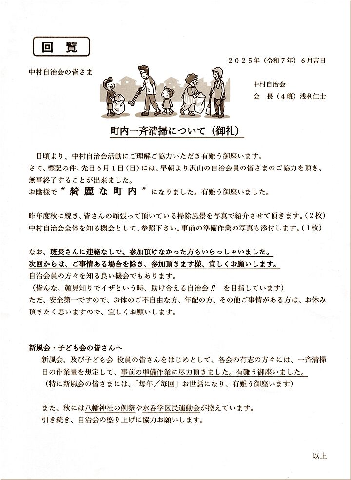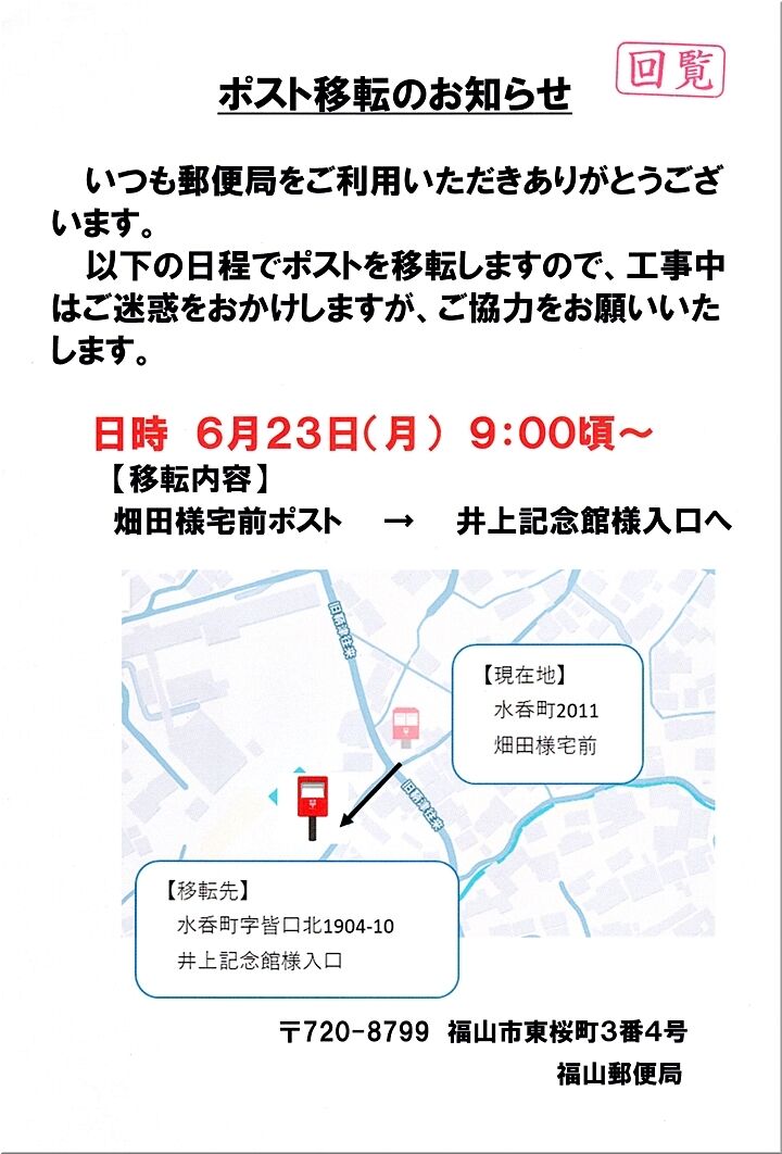 本日廻って来ました自治会回覧は、行事等のご案内でしたけど、ふ~ん、7/20に実施の参院通常選挙で、水呑投票区の投票所が変更となりますか…