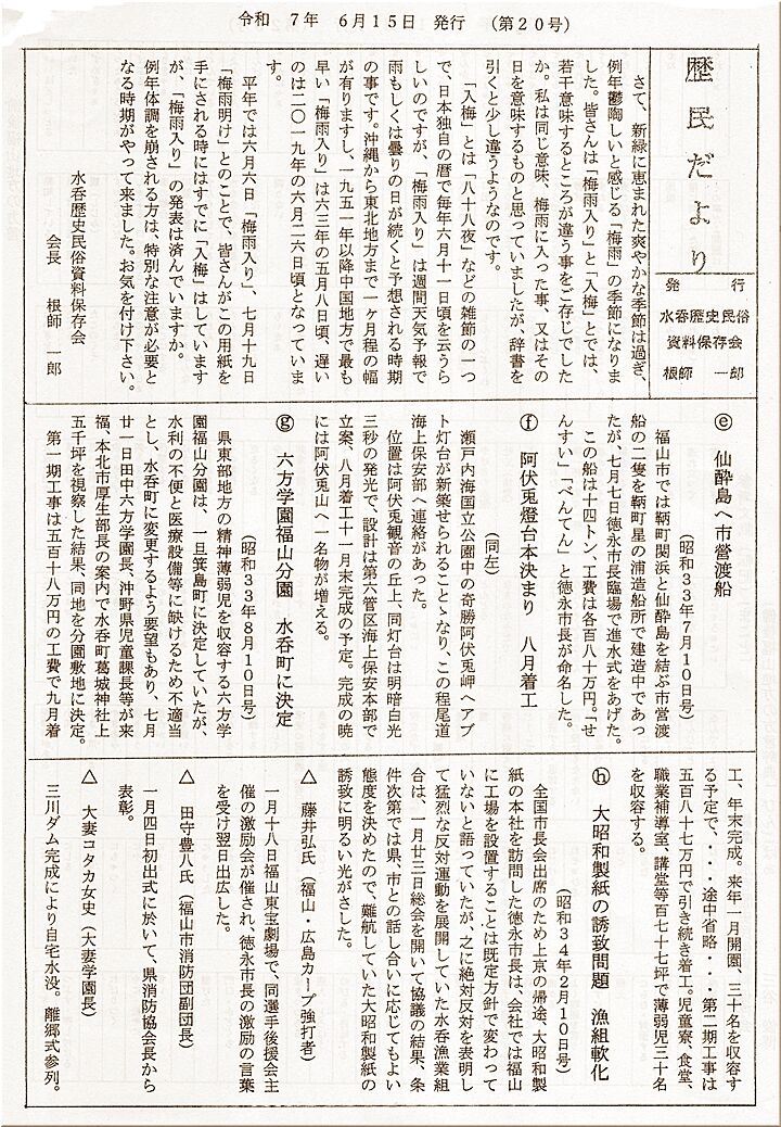 仙酔島への市営渡船…阿伏兎燈台着工本決まり…六方学園建設、水呑町に決定…と、こんな話題は実に懐かしくGONsanの記憶にも不鮮明ながら充分残っております(^-^)