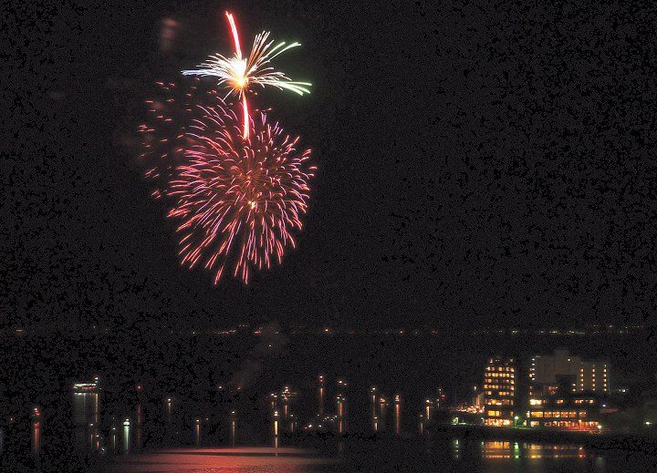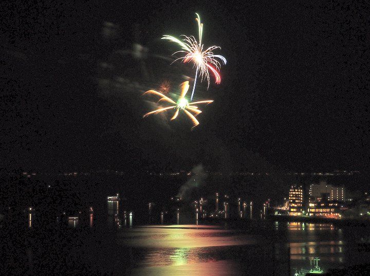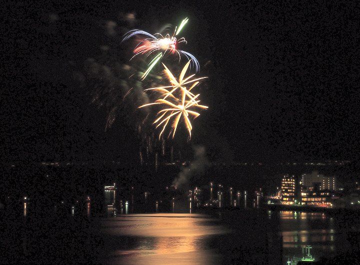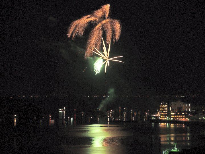 花火の打ち上げが始まりまして、20分位おられましたでしょうか…ご主人の缶ビールが凡て亡くなりました頃に退散されました(^-^)