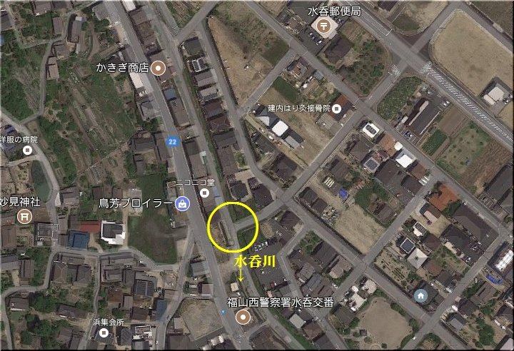 直進しますと水呑川で、その対岸には、昔は「しまなみ信金」の店舗がありましたけど、もぅ何年も前に店舗移転で旧店舗は解体です。