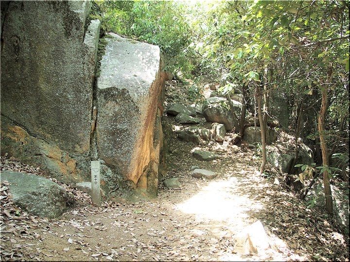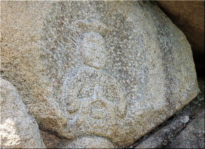 スグ先に磨崖仏があるのですけど、その正面に行こうにも高さのあります岩を下らなくては…この岩を飛び降りましたら、今度は元の場所に戻りますのが難しいし…