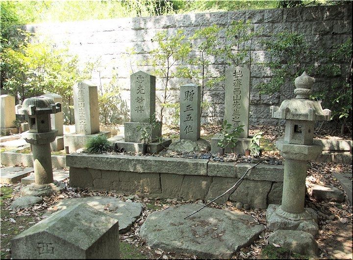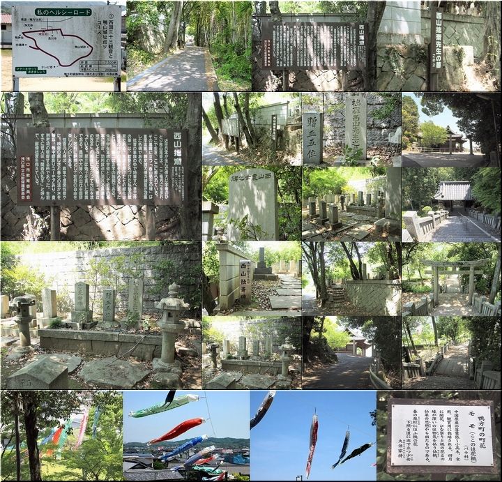 長川寺とお別れし鴨神社方向に進みますと、この途中に存在しますのが西山家一族のお墓が…この墓地には「西山拙斎」のお墓も…