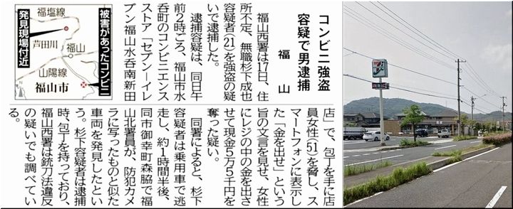 本日の朝食時、中国新聞朝刊の「コンビニ強盗」記事に眼が止まってしまいました。