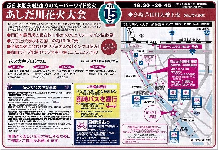 従来、「福山夏まつり」は、8/13~8/15の3日間の開催ですけど、なんでも人材難で3日間の開催が難しくなりまして、今回より2日間の開催に踏み切られましたとか…