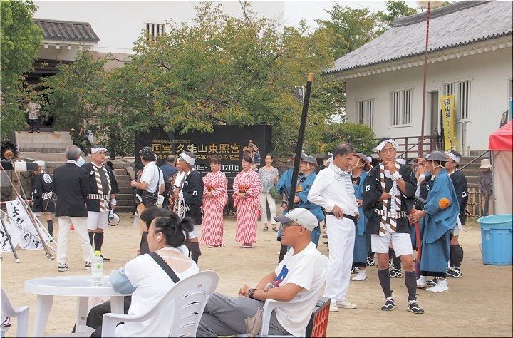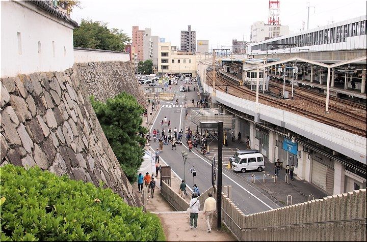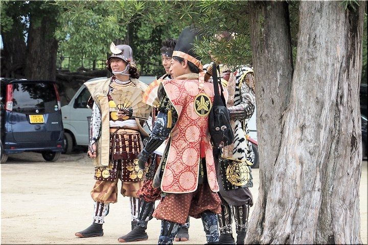 福山駅北口の石垣脇に眼を向けてみましたら、岡崎武将隊の皆様?…備後福山武将隊の皆様?…何と言う武将隊か分かりませんけど人垣が(^-^)
