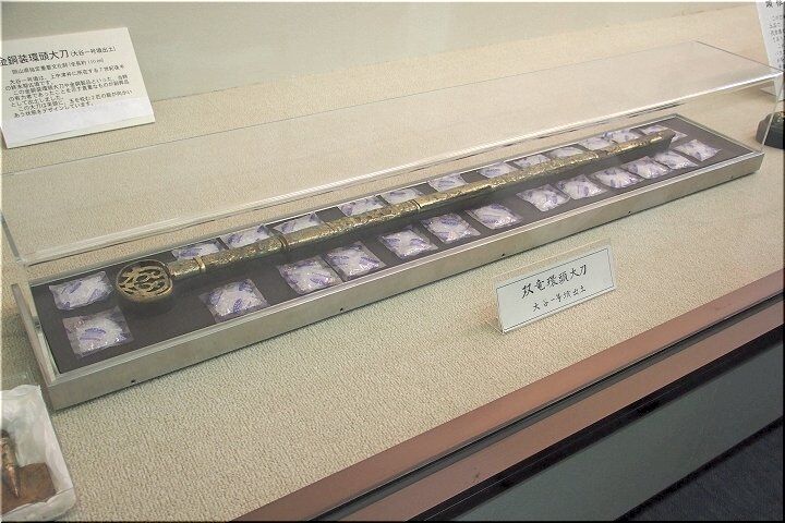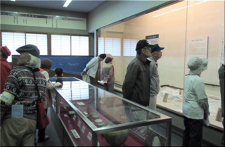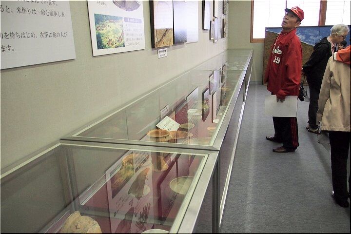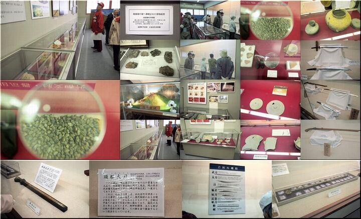 1階の展示室内を見終えますと、次は2階の展示室へ…ここには、弥生時代(後期)の焼けた米とか、後で訪れます大谷1号墳から出土の「金銅装環頭太刀」等の展示品がありまして、仲々興味深いものでありました(^.-)☆