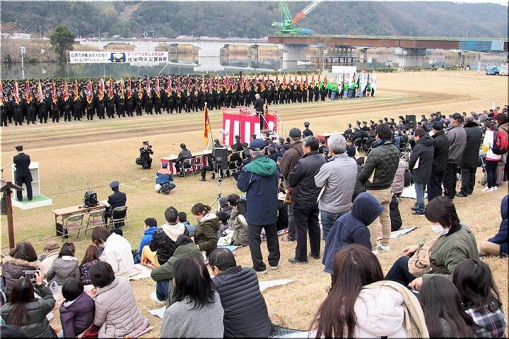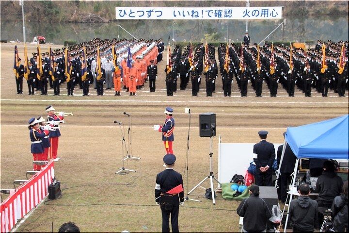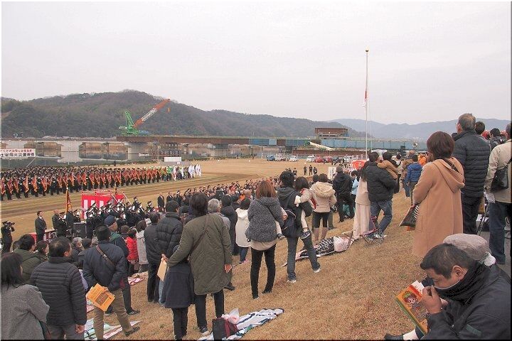 式典の最中に、一台の救急車が草戸大橋を急行です。出初め式に参加しておられません方々は日常業務に従事ですから、出初め式会場近くを救急車が走行も決して不思議でもありませんけど(^-^)