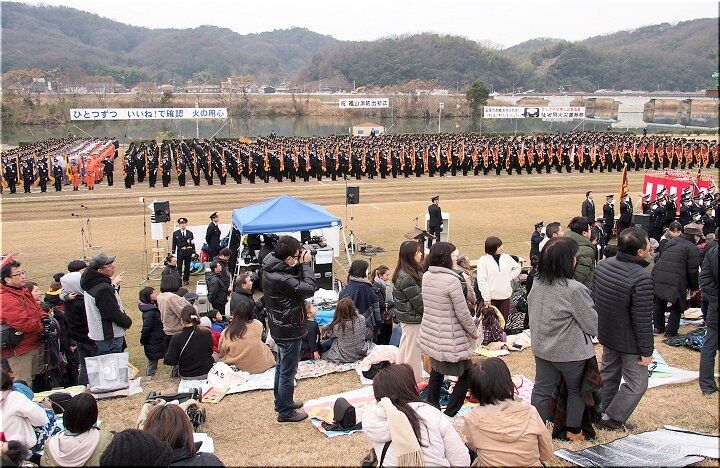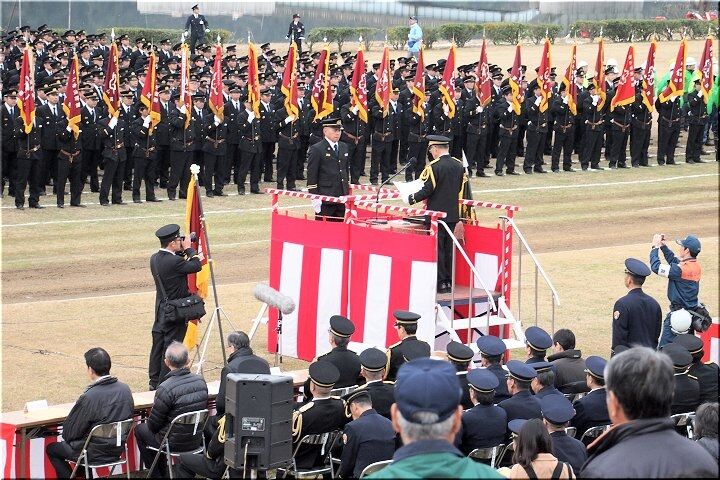 こんな感じで式典が終わりますと、皆さんお待ちかねの演技披露・公開訓練と続きますけど、この時間帯になりますと観客も随分増加。毎年、この演技披露・公開訓練を楽しみに出初め式見物でヤッて来られる方々も多いのでしょうねぇ~