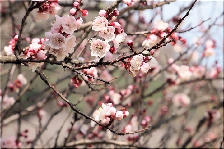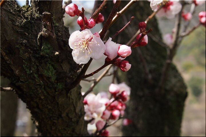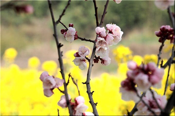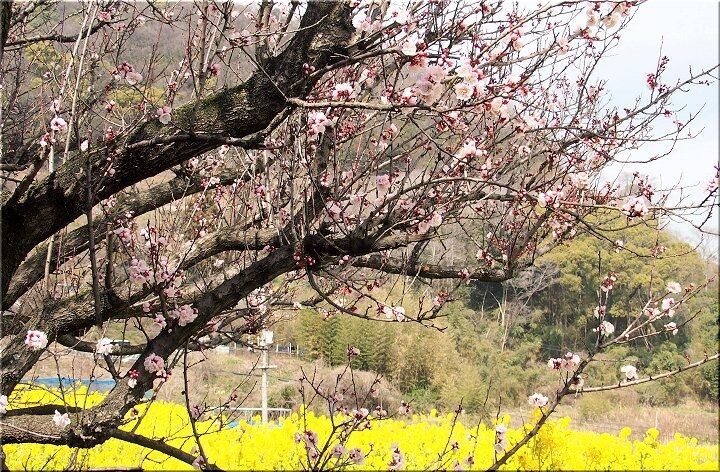 菜の花畑の一角には、杏が開花をしておりました。大概、つぼみ状態が、ここまでの道中では多かったのですけど、菜の花畑は温かいのかも…満開ではありませんけど、開花しておりました(^-^)/"