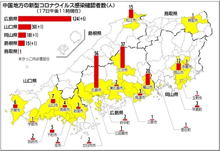 これで、福山市内では20名の方々が感染の確認。とうとう、お隣りの岡山県の18名を抜いてしまいましたネ…