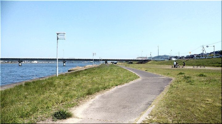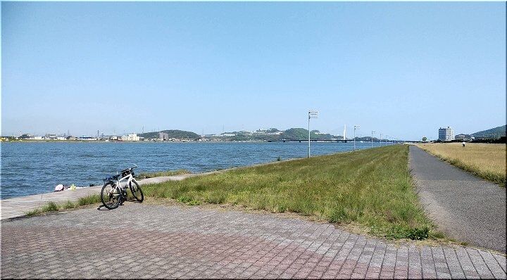 小水呑橋下を抜け芦田川大橋間ではワンcan連れて散策の方…ジョギング・サイクリング中の方々3組との擦れ違い…そして、護岸近くに自転車を駐め、護岸で横になりくつろいで居られる若者一人…