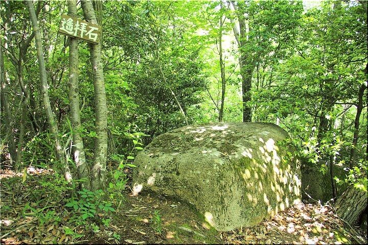 引き返しておりますと、陰陽石の背後と言うか手前には「遥拝石」と表示されました石が…