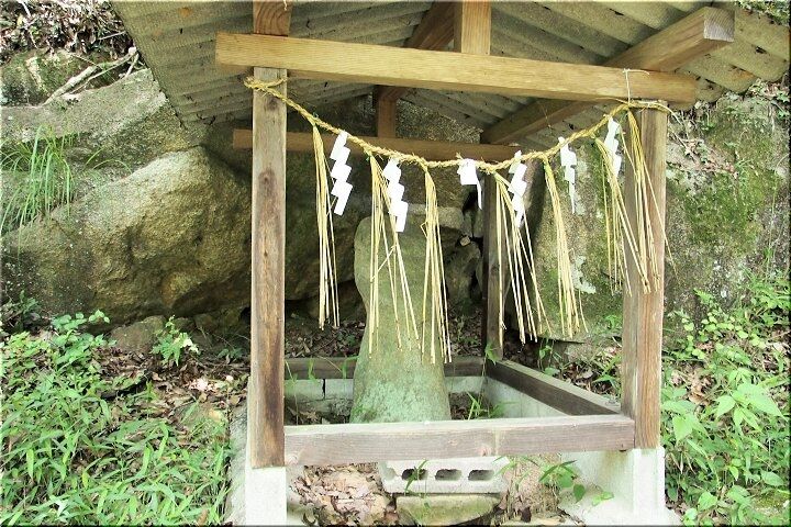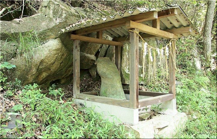 そしてまた進んで行きますと、祠が…中には石が祀られておりました。男性のシンボルにも見えますけど…