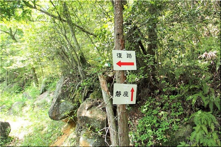 この石柱を振り返りながら進んで行きますと、「←復路 ↑磐座」の案内標識が…このまま直進しますと、こんな「磐座(虚空蔵菩薩)」に辿り着きますのでしょうけど、今回は「←復路」に向かいます事に。