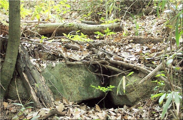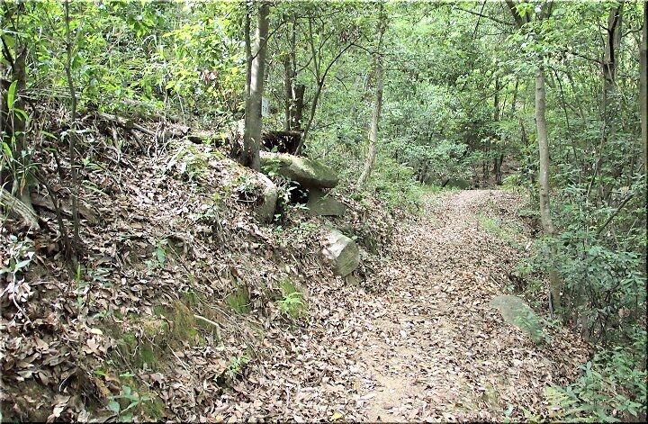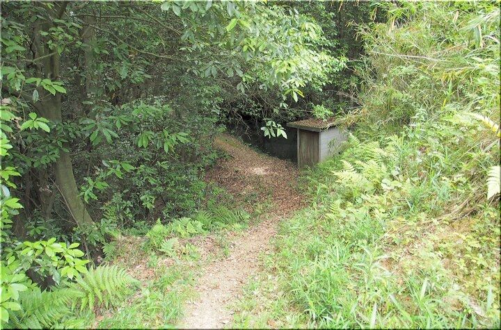 ガード手前の見学道入口から入り下って行きますと、小さな池が存在です。この小さな池を横目に進んで行きますと、早速、古墳が…