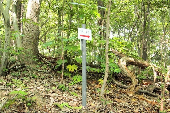 そぅしましたら「復路→」の案内表示が…うん、うん、ここですネ、往路で順路を間違いまして、この「復路→」の方向に進みましたように思います。