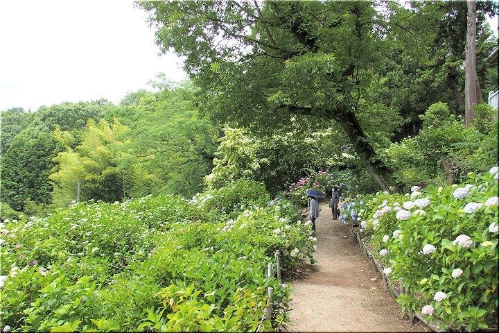 神社下の紫陽花へ遊歩道を進んで行きますが、先ほどまで何人かの方々がおられましたけど、誰もいなくなりましたので、難なく嫁さんの場所確認。