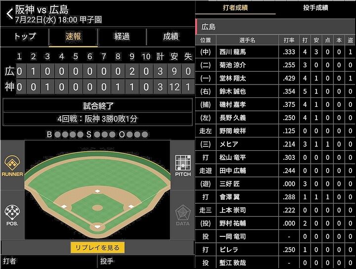 そして、9回表にカープ逆転で「3×2」で1点リード。
