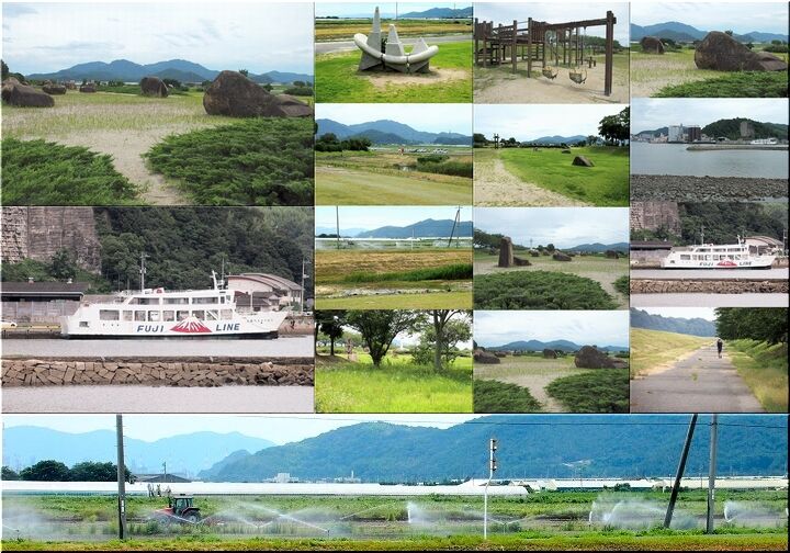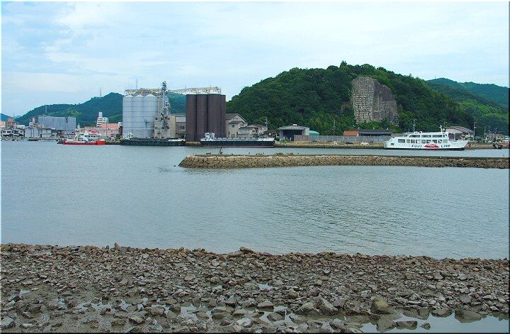 復路の途中からは、笠岡湾が臨めます土手を歩行です。フェリー乗り場に眼を向けますと、笠岡諸島を結びます「富士ラインフェリー」が(^.-)☆